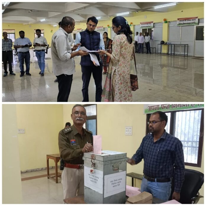 कलेक्टर कार्तिकेया गोयल ने निरीक्षण कर मतदान प्रक्रिया का जायजा लिया। उन्होंने अधिकारियों को मतदान की प्रक्रिया पूर्ण कर मतपत्रों को निर्वाचन आयोग के निर्देशानुसार पूरी सुरक्षा के साथ कोषालय के स्ट्रांग रूम में सुरक्षित जमा करवाने के निर्देश दिए।