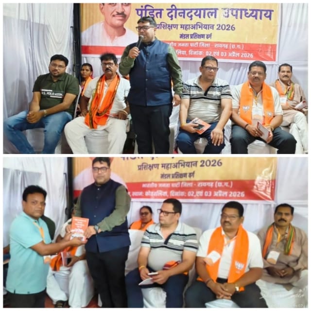 रायगढ़। भारतीय जनता पार्टी द्वारा चलाया जा रहा मंडल प्रशिक्षण महाअभियान पूरे रायगढ़ जिले में सुव्यवस्थित एवं सफलतापूर्वक संचालित हुआ। इसी क्रम में लोइंग मंडल में आयोजित प्रशिक्षण अभियान का समापन सत्र उत्साह एवं गरिमामय वातावरण में संपन्न हुआ।