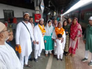मुसलमानो के पवित्र स्थल मक्का मदीना से 40 दिनों की हज के अराकान पूरे करने के बाद 2 जुलाई को घर वापसी हुई। हज से वापसी पर रेलवे स्टेशन में हाजियों के परिजनों सहित मुस्लिम समाज के लोग मौजूद रहे। ट्रेन से उतरते ही उनके स्वागत के लिए लोग उमड़ पड़े।