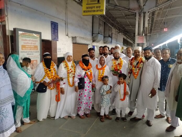 हज के मुकद्दस सफर से हाजियों की बुधवार को घर वापसी हुई। हमसफर एक्सप्रेस से शहर पहुंचाने पर मुस्लिम समाज के द्वारा रेलवे स्टेशन पर जोरदार स्वागत किया गया। फूल मालाओं से इस्तकबाल कर हज की बधाई दी गई।