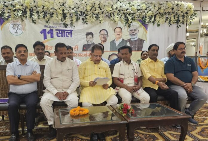 पूर्व मंत्री वर्तमान में बिलासपुर के विधायक अमर अग्रवाल ने आज प्रधानमंत्री श्री नरेन्द्र मोदी जी की नेतृत्व में केन्द्र सरकार के 11 वर्ष पूर्ण होने के उपलक्ष्य में आयोजित प्रेसवार्ता को सम्बोधित करते हुए कहा कि हमारे यशस्वी प्रधानमंत्री श्री नरेंद्र मोदी जी के 11 वर्ष का कार्यकाल अनेक मायनों में ऐतिहासिक रहा है। उनके दूरदर्शिता पूर्ण नेतृत्व में देश ने समावेशी विकास, समृद्धि और खुशहाली के नये दौर में कदम रखा है। मोदी जी के नेतृत्व वाली सरकार का हर दिन अंत्योदय की साधना को समर्पित रहा है। सबका साथ-सबका विकास, सबका विश्वास और सबका प्रयास की भावना के साथ समाज के सभी वर्ग विकास के रास्ते पर तेजी से आगे बढ़ रहे हैं। उनके कार्यकाल में देश और दुनिया में भारत का गौरव बढ़ा है। छत्तीसगढ़ ने डबल इंजन की सरकार में चौतरफा विकास के नये आयाम गढ़े हैं। चाहे विकास की बात हो या माओवादी आतंक से निपटने की, केन्द्र सरकार के राज्य सरकार को भरपूर समर्थन और सहयोग मिला है।