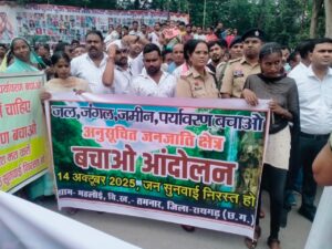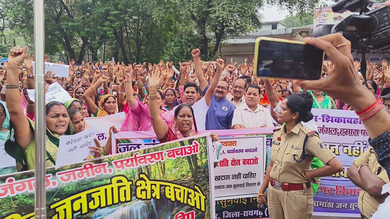 रायगढ़। गारे पेल्मा सेक्टर वन ओपन कॉस्ट माइंस के खिलाफ बड़ी तादात में प्रभावित गांव के आदिवासी ग्रामीणों का हुजूम जिला मुख्यालय में देखने को मिला। कोयला प्रभावित गांव के लगभग 13 गांव से अधिक के आदिवासी ग्रामीणों का हुजूम अनुसूचित जनजाति क्षेत्र बचाओ आंदोलन के रूप में देखने को मिला।