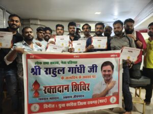 कार्यक्रम के दौरान युवा कांग्रेस अध्यक्ष आशीष जायसवाल ने युवाओं के मध्य राहुल गांधी के विचारों को युवाओं में साझा करते हुए कहा कि “रक्तदान” एक सामाजिक सरोकार है,और जिस तरह से राहुल गांधी देश की उन्नति तरक्की के साथ साथ युवा,महिला ,सभी धर्मो , जातियो एवं समाज के प्रत्येक वर्ग के उत्थान के लिए संघर्ष कर रहे है,हम सभी युवाओं को भी उनका अनुशरण करते हुए, निरन्तर समाज के उत्थान के लिए कार्य करने का आज राहुल जी के जन्मदिन के अवसर पर प्रण लेना चाहिए,एवं कांग्रेस के सभी कार्यक्रमो में जुड़कर जन सेवा को प्राथमिकता देते हुए,अपने नेता श्री राहुल गांधी का हाथ मजबूत करने का हर संबंध प्रयास करना चाहिए।